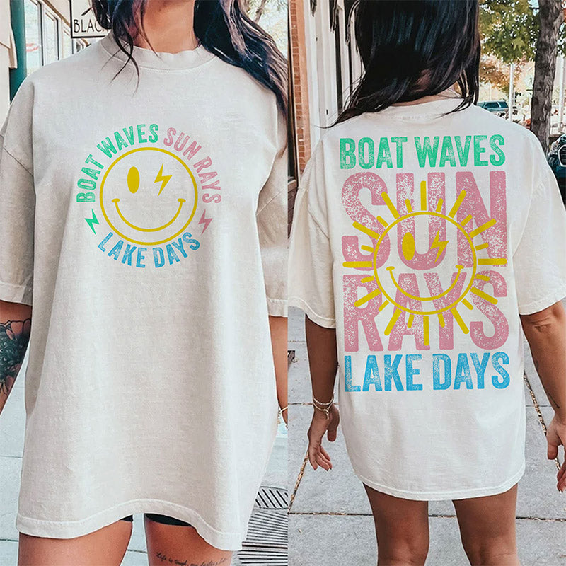 Boat Waves Sun Rays Lake Days Retro Summer T-shirt