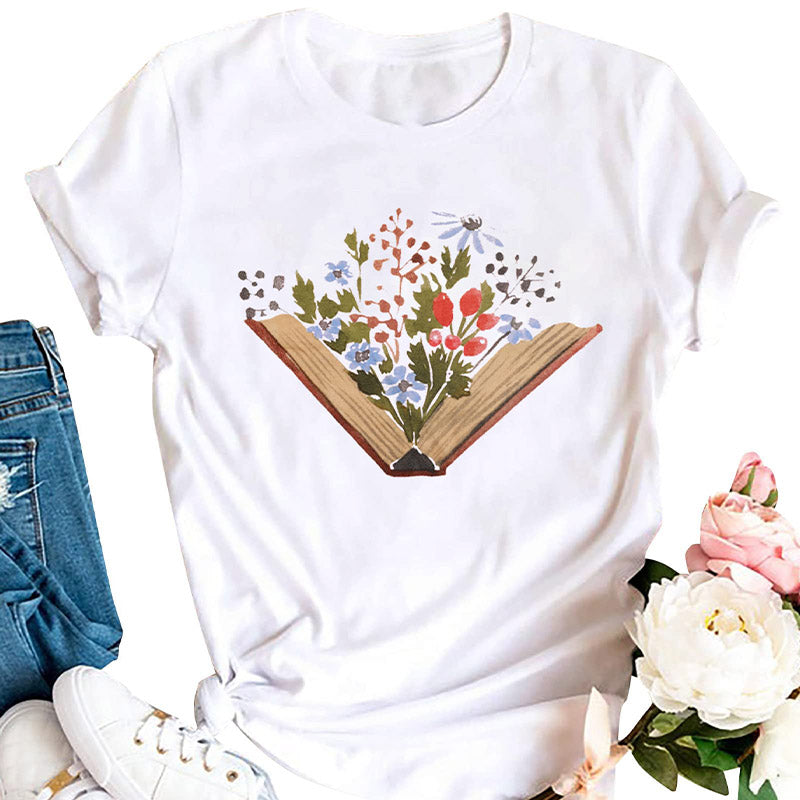T-shirt drôle de lecture de livre de fleurs sauvages