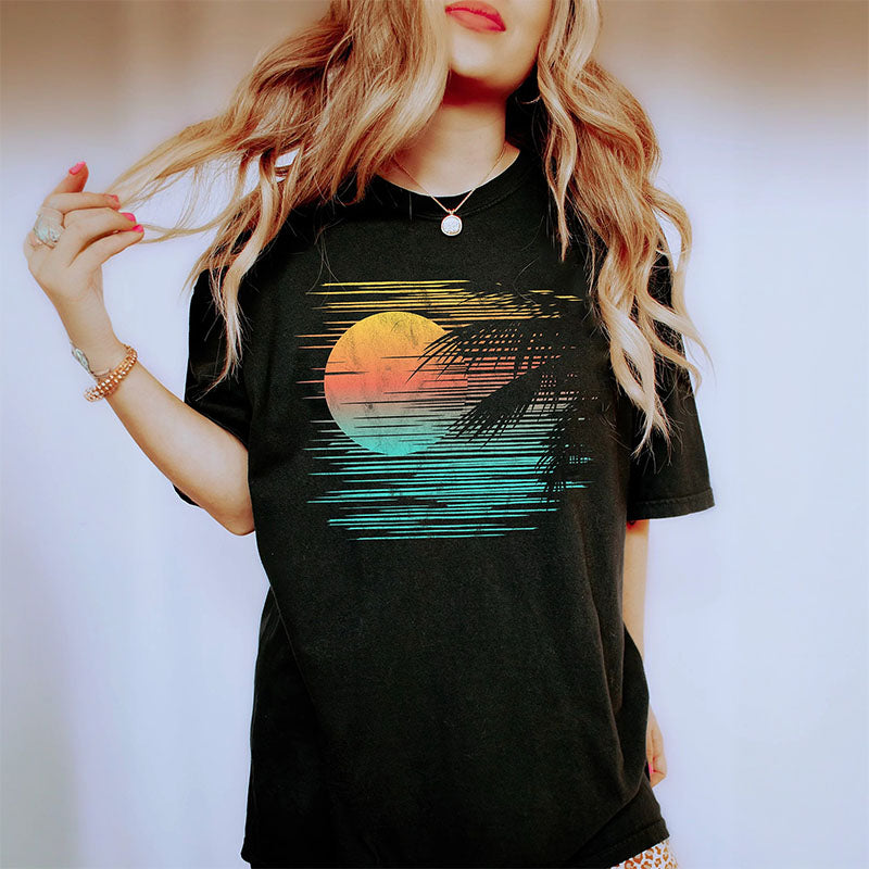 T-shirt avec vue sur la plage au coucher du soleil